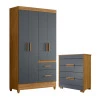 Guarda Roupa Solteiro Madri e Cômoda Dhara Freijó Cinza – Moval