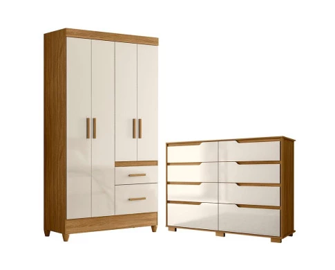 Guarda Roupa Solteiro Madri e Cômoda Georgia Freijó Off White – Moval