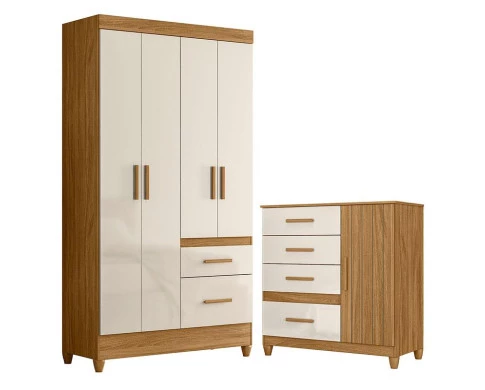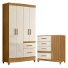 Guarda Roupa Solteiro Madri e Cômoda Vênus com pés Freijó Off White – Moval