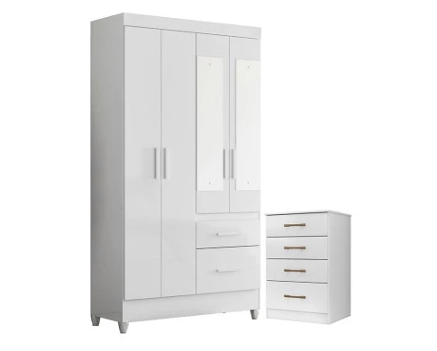 Guarda Roupa Solteiro Madri Flex com espelho e Cômoda MS913 Branco Brilho – Moval