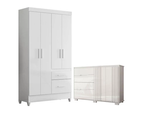 Guarda Roupa Solteiro Madri Flex e Cômoda Texas Branco Brilho – Moval