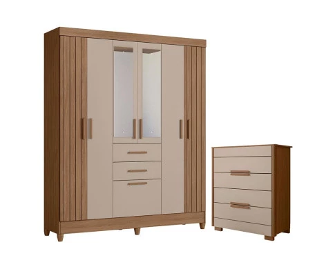 Guarda Roupa Solteiro Malta com Espelho e Cômoda Dhara Carvalho Fendi – Moval