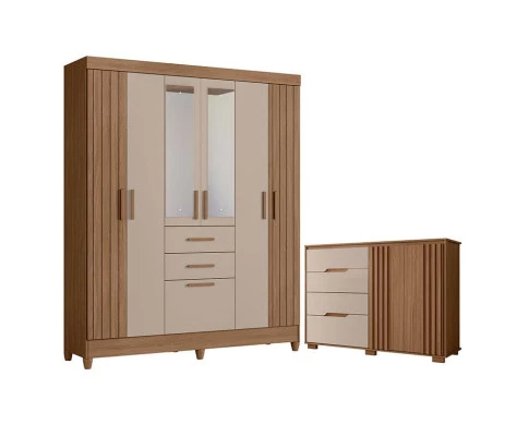 Organize seu quarto com elegância e o melhor custo benefício do mercado. Apresentamos o Guarda Roupa Solteiro Malta e Cômoda Texas fabricados pela Moval. Guarda Roupa possui 07 portas sendo as laterais com detalhes frisados e as centrais com espelhos, 02 gavetas com corrediças metálicas, puxadores em MDF, cabideiro e calceiros em alumínio para melhor organização interna e pés em PVC. A cômoda possui 04 gavetas, com corrediças telescópicas, 02 portas com detalhes ripados, dobradiças 35mm com amortecedor, puxadores usinados e pés em PVC. Fabricado com materiais de alta qualidade que garante resistência e durabilidade ao produto. Confira mais detalhes e aproveite!