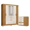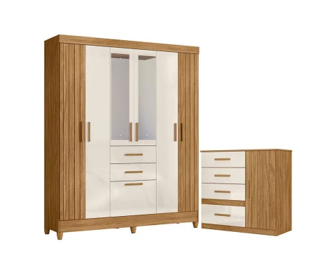 Guarda Roupa Solteiro Malta com espelho e Cômoda Vênus Freijó Off White – Moval