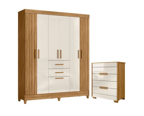 Guarda Roupa Solteiro Malta e Cômoda Dhara Freijó Off White – Moval