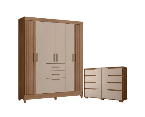 Guarda Roupa Solteiro Malta e Cômoda Georgia Carvalho Fendi – Moval
