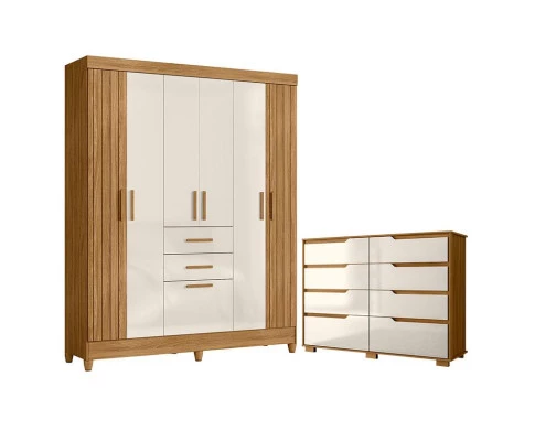 Guarda Roupa Solteiro Malta e Cômoda Georgia Freijó Off White – Moval