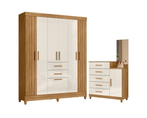 Guarda Roupa Solteiro Malta e Cômoda Lisboa Freijó Off White – Moval