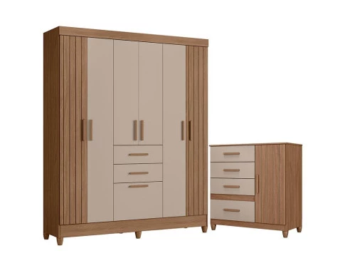 Guarda Roupa Solteiro Malta e Cômoda Vênus com Pés Carvalho Fendi – Moval