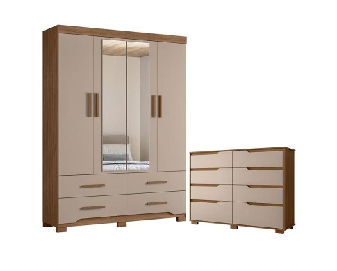 Organize seu quarto com elegância e o melhor custo benefício do mercado. Apresentamos o Guarda Roupa Solteiro Miami e Cômoda Georgia fabricados pela Moval. Guarda Roupa com 04 portas e 04 gavetas com corrediças telescópicas, espelhos inclusos, puxadores em MDF, cabideiro em alumínio para melhor organização interna, detalhes usinados nas gavetas, espaço ideal para roupas longas e pés em PVC. A cômoda possui 08 gavetas com corrediças telescópicas, gavetas com puxadores usinados e pés em PVC. Fabricado com materiais de alta qualidade que garante resistência e durabilidade ao produto. Confira mais detalhes e aproveite!