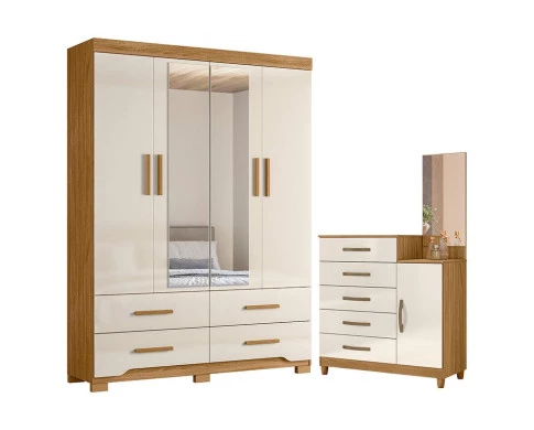 Organize seu quarto com elegância e o melhor custo benefício do mercado. Apresentamos o Guarda Roupa Solteiro Miami e Cômoda Lisboa fabricados pela Moval. Guarda Roupa com 04 portas e 04 gavetas com corrediças telescópicas, espelhos inclusos, puxadores em MDF, cabideiro em alumínio para melhor organização interna, detalhes usinados nas gavetas, espaço ideal para roupas longas e pés em PVC. A cômoda possui 05 gavetas com corrediças metálicas, 01 porta, painel em espelho, puxadores em MDF e pés em PVC. Fabricado com materiais de alta qualidade que garante resistência e durabilidade ao produto. Confira mais detalhes e aproveite!