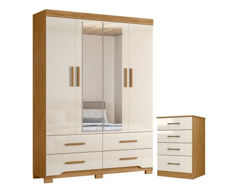 Organize seu quarto com elegância e o melhor custo benefício do mercado. Apresentamos o Guarda Roupa Solteiro Miami e Cômoda MS913 fabricados pela Moval. Guarda Roupa com 04 portas e 04 gavetas com corrediças telescópicas, espelhos inclusos, puxadores em MDF, cabideiro em alumínio para melhor organização interna, detalhes usinados nas gavetas, espaço ideal para roupas longas e pés em PVC. A cômoda possui 04 gavetas com corrediças metálicas e puxadores em MDF. Fabricado com materiais de alta qualidade que garante resistência e durabilidade ao produto. Confira mais detalhes e aproveite!