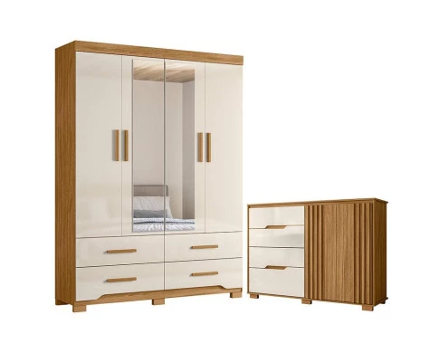 Organize seu quarto com elegância e o melhor custo benefício do mercado. Apresentamos o Guarda Roupa Solteiro Miami e Cômoda Texas fabricados pela Moval. Guarda Roupa com 04 portas e 04 gavetas com corrediças telescópicas, espelhos inclusos, puxadores em MDF, cabideiro em alumínio para melhor organização interna, detalhes usinados na gaveta, espaço ideal para roupas longas e pés em PVC. A cômoda possui 04 gavetas com corrediças telescópicas, dobradiças 35mm com amortecedor, portas com detalhes ripados, puxadores usinados e pés em PVC. Fabricado com materiais de alta qualidade que garante resistência e durabilidade ao produto. Confira mais detalhes e aproveite!