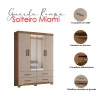 Guarda Roupa Solteiro Miami e Cômoda Vênus com pés Carvalho Fendi– Moval