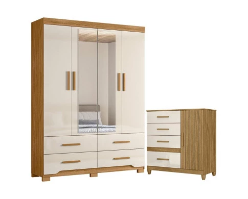 Organize seu quarto com elegância e o melhor custo benefício do mercado. Apresentamos o Guarda Roupa Solteiro Miami e Cômoda Vênus fabricados pela Moval. Guarda Roupa com 04 portas e 04 gavetas com corrediças telescópicas, espelhos inclusos, puxadores em MDF, cabideiro em alumínio para melhor organização interna, detalhes usinados nas gavetas, espaço ideal para roupas longas e pés em PVC. A cômoda possui 04 gavetas com corrediças metálicas, 01 porta, detalhe frisado, pés em PVC e puxadores em MDF. Fabricado com materiais de alta qualidade que garante resistência e durabilidade ao produto. Confira mais detalhes e aproveite!