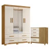 Guarda Roupa Solteiro Miami e Cômoda Vênus com pés Freijó Off White – Moval