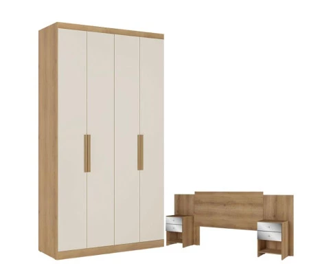 Renove o quarto com um conjunto moderno, funcional e cheio de personalidade! O Guarda-Roupa Solteiro Milan 4 Portas Capuccino/Off White Acetinado aliado à Cabeceira com Mesas de Cabeceira Formosa Capuccino – THB entrega um ambiente harmonioso, organizado e com muito estilo. O guarda-roupa Milan se destaca pelo seu design contemporâneo. Com 4 portas, ele oferece excelente capacidade interna para acomodar roupas, acessórios e itens do dia a dia. Organizado e ainda mais confortável e a cabeceira Formosa, com duas mesas de cabeceira integradas, complementa o conjunto com funcionalidade e beleza.Confira e aproveite já!