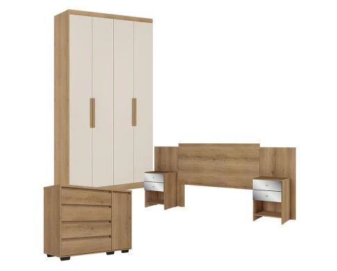 Complete o quarto com o Guarda-Roupa Solteiro Milan 4 Portas Capuccino/Off White, a Cômoda com Porta Aurora e a Cabeceira Formosa Capuccino. Um conjunto funcional e moderno, com ótimo espaço interno, acabamento de qualidade e design que valoriza o ambiente. Perfeito para quem busca organização, estilo e praticidade no dia a dia!