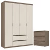 Guarda Roupa Solteiro Nobre 4 Portas Off White e Cômoda Gaveteiro Condessa Rustic Acetinado - THB