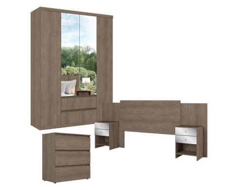 Guarda Roupa Solteiro Nobre Glass 4 Portas com Cômoda Gaveteiro Condessa e Cabeceira Formosa Glass Rustic Acetinado- THB