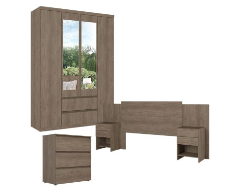 Guarda Roupa Solteiro Nobre Slim Glass 4 Portas com Cômoda Gaveteiro Condessa e Cabeceira Formosa Rustic Acetinado- THB