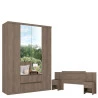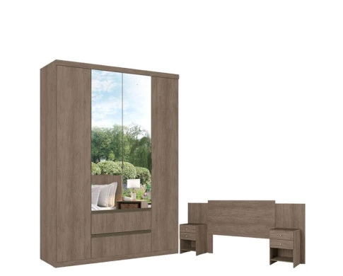 Guarda Roupa Solteiro Nobre Slim Glass 4 Portas Rustic Acetinado e Cabeceira com Mesas de Cabeceira Formosa Rustic- THB