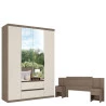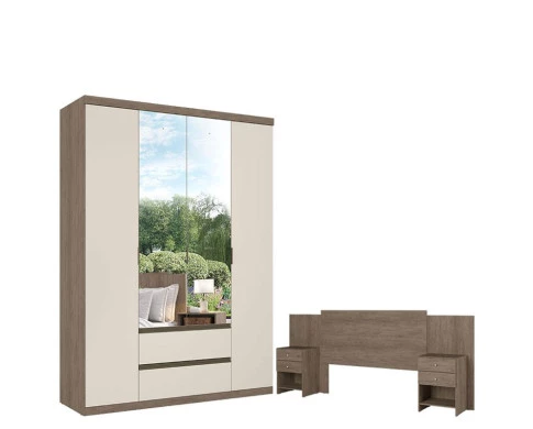 Guarda Roupa Solteiro Nobre Slim Glass 4 Portas Rustic Off White Acetinado e Cabeceira com Mesas de Cabeceira Formosa Rustic - THB