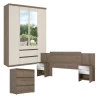 Guarda Roupa Solteiro Nobre Slim Glass 4 Portas Rustic Off White com Cômoda Gaveteiro Condessa e Cabeceira Formosa Glass Rustic - THB