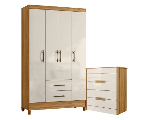 Organize seu quarto com elegância e o melhor custo benefício do mercado. Apresentamos o Guarda Roupa Solteiro Paraty e Cômoda Dhara fabricados pela Moval. Guarda Roupa com 04 portas e 02 gavetas com corrediças metálicas, puxadores na cor bronze, cabideiro para melhor organização interna, espaço ideal para roupas longas e pés em PVC. A cômoda possui 04 gavetas com corrediças telescópicas, moldura lateral de 25mm e tampo de 15mm, puxadores em MDF, pés em PVC e um design moderno que combina com qualquer decoração. Fabricado com materiais de alta qualidade que garante resistência e durabilidade ao produto. Confira mais detalhes e aproveite!