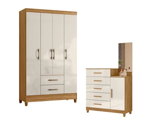 Organize seu quarto com elegância e o melhor custo benefício do mercado. Apresentamos o Guarda Roupa Solteiro Paraty e Cômoda Lisboa fabricados pela Moval. Guarda Roupa com 04 portas e 02 gavetas com corrediças metálicas, puxadores na cor bronze, cabideiro para melhor organização interna, espaço ideal para roupas longas e pés em PVC. A cômoda possui 05 gavetas com corrediças metálicas, 01 porta, puxadores em MDF, painel com espelho, pés em PVC e um design moderno que combina com qualquer decoração. Fabricado com materiais de alta qualidade que garante resistência e durabilidade ao produto. Confira mais detalhes e aproveite!