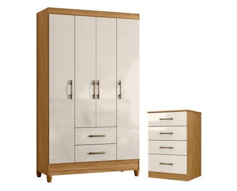 Organize seu quarto com elegância e o melhor custo benefício do mercado. Apresentamos o Guarda Roupa Solteiro Paraty e Cômoda MS913 fabricados pela Moval. Guarda Roupa com 04 portas e 02 gavetas com corrediças metálicas, puxadores na cor bronze, cabideiro para melhor organização interna, espaço ideal para roupas longas e pés em PVC. A cômoda possui 04 gavetas com corrediças metálicas, sendo a última maior puxadores em MDF e um design moderno que combina com qualquer decoração. Fabricado com materiais de alta qualidade que garante resistência e durabilidade ao produto. Confira mais detalhes e aproveite!