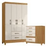Guarda Roupa Solteiro Paraty e Cômoda Vênus com Pés Freijó Off White - Moval