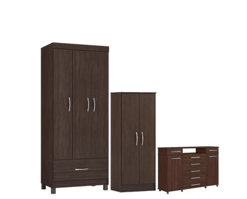 Guarda Roupa Solteiro Prince com Multiuso Viena com Cômoda London Café - Demóbile
