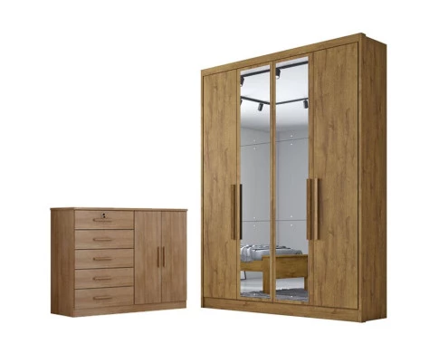 Guarda Roupa Solteiro Sevilha com Espelho e Cômoda Seul Cumaru 23 - Novo Horizonte