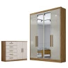 Guarda Roupa Solteiro Sevilha com Espelho e Cômoda Seul Cumaru 25 Fendi - Novo Horizonte
