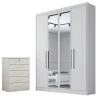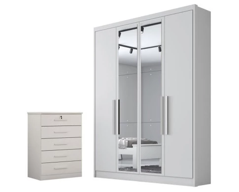Guarda Roupa Solteiro Sevilha 4 Portas 3 Gavetas Neve com Espelho – Novo Horizonte