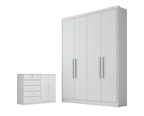 Guarda Roupa Solteiro Sevilha 4 Portas 3 Gavetas Neve – Novo Horizonte