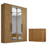 Guarda Roupa Solteiro Sevilha com Nicho e Espelho e Gaveteiro Milão com Chave Cumaru 23 - Novo Horizonte