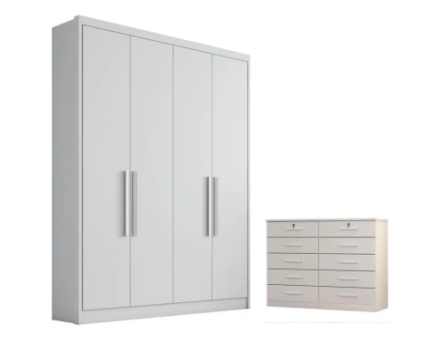 Procurando móveis para que seu quarto fique mais bonito e funcional? Aqui você encontra a opção ideal e com muita qualidade. O conjunto composto pelo guarda roupa da linha Sevilha possui várias repartições, gavetas, prateleiras, cabideiros garantindo mais organização para suas roupas e pertences. O gaveteiro da linha Milão proporciona espaço extra possui 10 gavetas equipadas com corrediças telescópicas trazendo suavidade ao abrir e fechar. Venha conferir e garantir o seu!