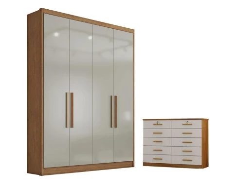 Procurando móveis para que seu quarto fique mais bonito e funcional? Aqui você encontra a opção ideal e com muita qualidade. O conjunto composto pelo guarda roupa da linha Sevilha possui várias repartições, gavetas, prateleiras, cabideiros garantindo mais organização para suas roupas e pertences. O gaveteiro da linha Milão proporciona espaço extra possui 10 gavetas equipadas com corrediças telescópicas trazendo suavidade ao abrir e fechar. Venha conferir e garantir o seu!