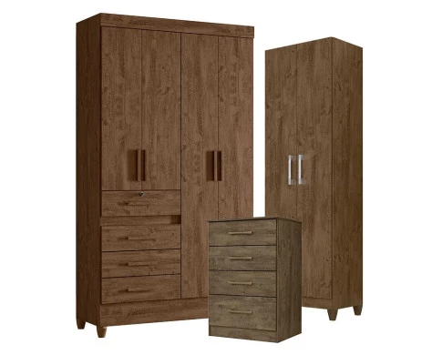 Guarda Roupa Solteiro Sobral com Cômoda MS913 e Armário Multiuso New Íris Castanho Wood – Moval