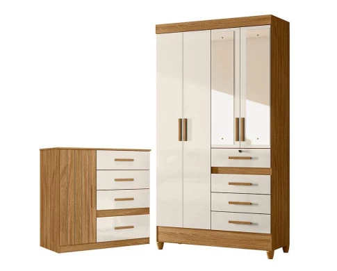 Está querendo renovar seu quarto com o melhor custo benefício do mercado. Apresentamos o Guarda Roupa Solteiro Sobral e Cômoda Vênus fabricados pela Moval. Guarda Roupa possui 04 portas sendo 02 com espelhos, 04 gavetas sendo a primeira com fechadura e chave ideal para guardar itens pessoais com segurança, corrediças metálicas, puxadores em MDF, cabideiros em alumínio para melhor organização interna e pés em PVC. A cômoda possui 04 gavetas com corrediças metálicas, 01 porta com detalhes frisados e puxadores em MDF. Fabricado com materiais de alta qualidade que garante resistência e durabilidade ao produto. Confira mais detalhes e aproveite!