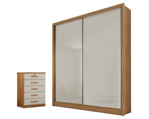 Procurando móveis para seu quarto? Transforme seu ambiente em um espaço mais organizado, prático e sofisticado com esse lindo conjunto fabricado pela Novo Horizonte. O guarda roupa da linha Toledo possui 2 portas de correr, prateleiras bem distribuídas e gavetas equipadas com corrediças telescópicas garantindo mais qualidade e resistência. A cômoda gaveteiro da linha Suiça possui 5 gavetas oferecendo espaço extra para que seu quarto fique ainda mais organizado e aconchegante. Confira e aproveite, garanta já o seu!