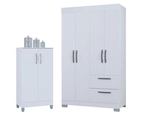 Está procurando móveis para montar seu quarto? Então apresentamos para você este belo conjunto composto pelo guarda roupa da linha Tóquio com o armário multiuso. O guarda roupa conta com quatro portas oferecendo um amplo espaço interno para guardar suas roupas e acessórios. Possuindo duas gavetas com corrediças metálicas garante uma abertura suave. Já o armário, é compacto e perfeito para diversos ambientes. Com duas portas, oferece uma ótima solução para manter organizado. Assim como o guarda roupa, possui puxadores e pés em plástico resistente, garantindo mais segurança. Desenvolvidos em MDP, sendo ideal para quem busca praticidade e estilo em um ambiente mais compacto, com a qualidade reconhecida da Poquema. Confira e aproveite!