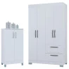 Guarda Roupa Solteiro Tóquio 4 Portas com Armário Multiuso 2 Portas Pequeno Branco Brilho - Poquema
