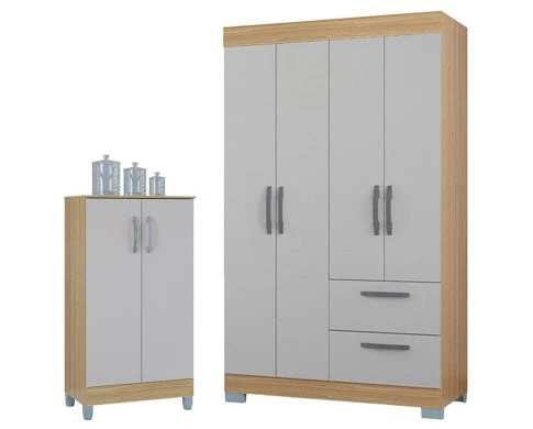 Está procurando móveis para montar seu quarto? Então apresentamos para você este belo conjunto composto pelo guarda roupa da linha Tóquio com o armário multiuso. O guarda roupa conta com quatro portas oferecendo um amplo espaço interno para guardar suas roupas e acessórios. Possuindo duas gavetas com corrediças metálicas garante uma abertura suave. Já o armário, é compacto e perfeito para diversos ambientes. Com duas portas, oferece uma ótima solução para manter organizado. Assim como o guarda roupa, possui puxadores e pés em plástico resistente, garantindo mais segurança. Desenvolvidos em MDP, sendo ideal para quem busca praticidade e estilo em um ambiente mais compacto, com a qualidade reconhecida da Poquema. Confira e aproveite!