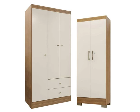Guarda Roupa Solteiro Versa 3 Portas com Armário Multiuso Luna Freijó Off White Fosco- Kits Paraná