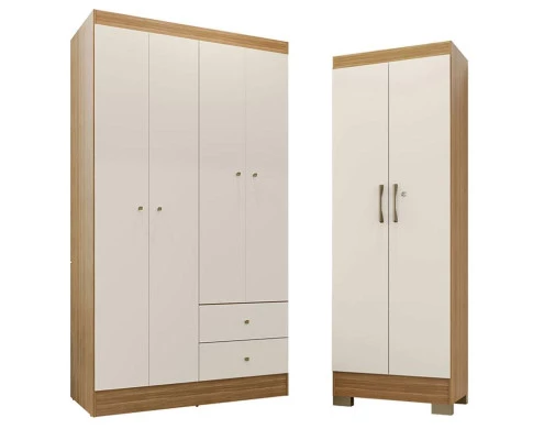 O Guarda-Roupa Solteiro Versa 4 Portas com Armário Multiuso Aura, da Kits Paraná, é a escolha ideal para quem busca organização, funcionalidade e design sofisticado em um só conjunto. Com acabamento Freijó Off White Fosco, ele traz um toque de elegância natural ao ambiente, combinando perfeitamente com diferentes estilos de decoração. O Guarda-Roupa Versa conta com quatro portas espaçosas, prateleiras internas bem distribuídas, cabideiro metálico e gavetas com corrediças telescópicas, oferecendo praticidade e conforto no dia a dia.O Armário Multiuso Luna complementa o conjunto com ótimo aproveitamento de espaço, sendo ideal para guardar roupas de cama, toalhas, calçados ou objetos diversos. Desenvolvido pela Kits Paraná com toda simplicidade.