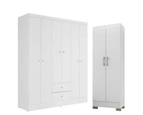 Guarda Roupa Solteiro Versa 6 Portas Branco Rosa Flex Fosco com Armário Multiuso Luna Branco Fosco - Kits Paraná