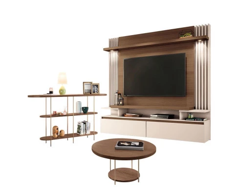 Home Suspenso Cosmo Castanho Off White e Aparador Infinity e Mesa de Centro Sky Castanho- HB Móveis